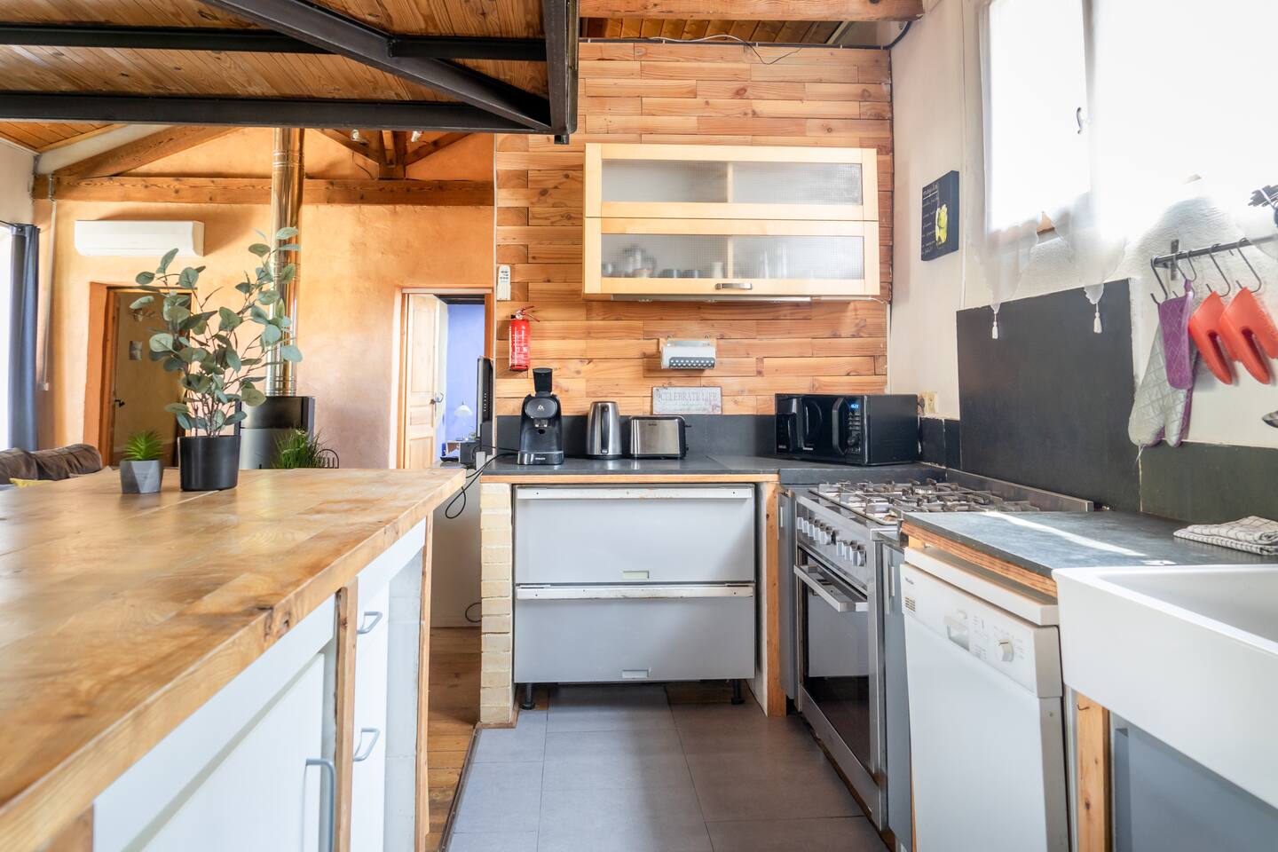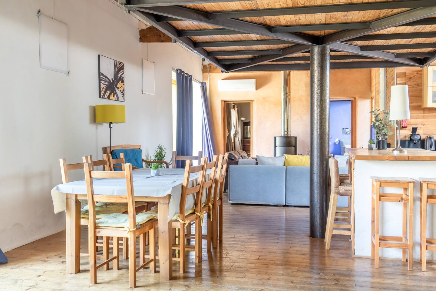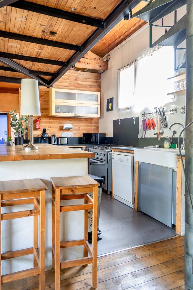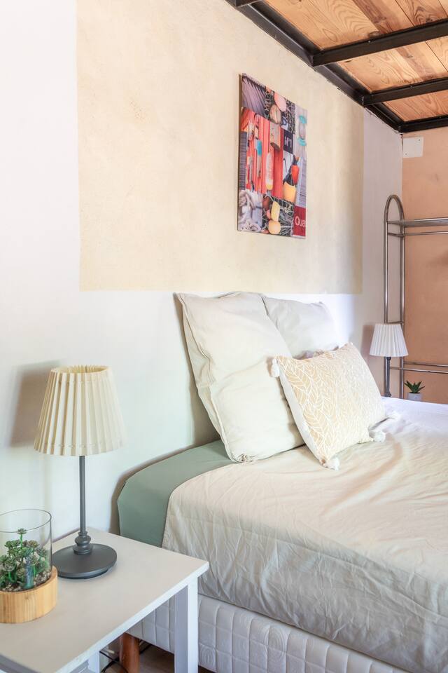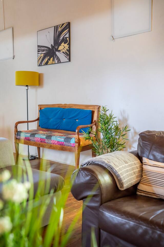 Aura is a holiday apartment fully renovated in 2025, set in a beautifully restored 18th-century convent just a short stroll from the heart of Pézenas. Ideal for families or groups, it sleeps 8 guests with 2 ensuite bedrooms and 2 double beds on separate mezzanines. The very large living room has the capacity of accommodating large groups for dinners. The brand-new open-plan kitchen features a professional stove and oven. The living room has two large sliding doors that lead to a private terrace and garden with BBQ—perfect for relaxing outdoor meals. Guests enjoy access to the large communal garden shaded by plane trees and a swimming pool shared by all five apartments. Couvent des Ursulines is ideal for family holidays, reunions, or retreats, and can host up to 32 guests across five apartments. Each unit accommodates 6 to 8 guests, and Aura in particular features a spacious living room that can be used flexibly for work meetings and group meals. Overview Sleeps: 8 guests Bedrooms: 2 ensuite bedrooms (1 with double bed 140cm; 1 with king-size bed 180cm or two singles) Mezzanine: 2 double beds on tatami mats (160cm) Bathrooms: 2 ensuite bathrooms and a washroom on the ground floor Kitchen: Fully equipped open-plan kitchen Living Area: Comfortable lounge space with direct access to the terrace and garden Outdoor: Private terrace with BBQ and garden access Shared Amenities: pool, large communal garden, secure property