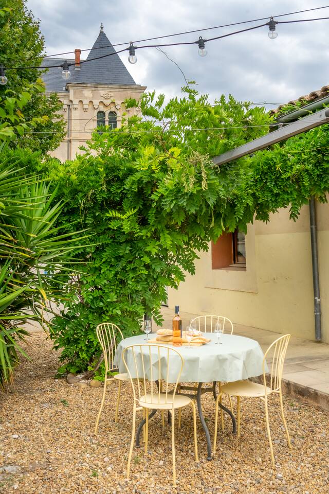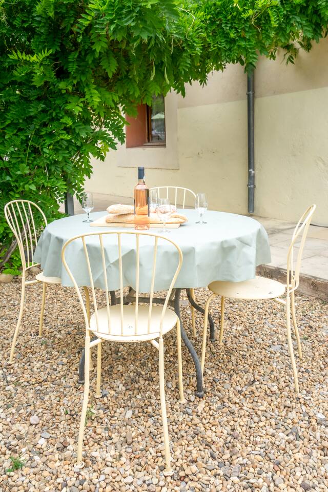 Aura is located within a converted convent that includes five separate holiday apartments. We can accommodate up to 32 guests in total, ideal for larger group events or family reunions. The pool is open seasonally (May to October) and is shared with other guests. A BBQ is available on the private terrace. The apartment is family-friendly and suitable for children. High-speed Wi-Fi is included. Quiet neighborhood within walking distance to the historic center of Pézenas and a short drive to vineyards and Mediterranean beaches. Bedding and towels are provided, as well as the initial needs in the kitchen Every apartment has one private parking spot in a protected compound across the street. You will have a reserved parking space, and a fob to open the gate.